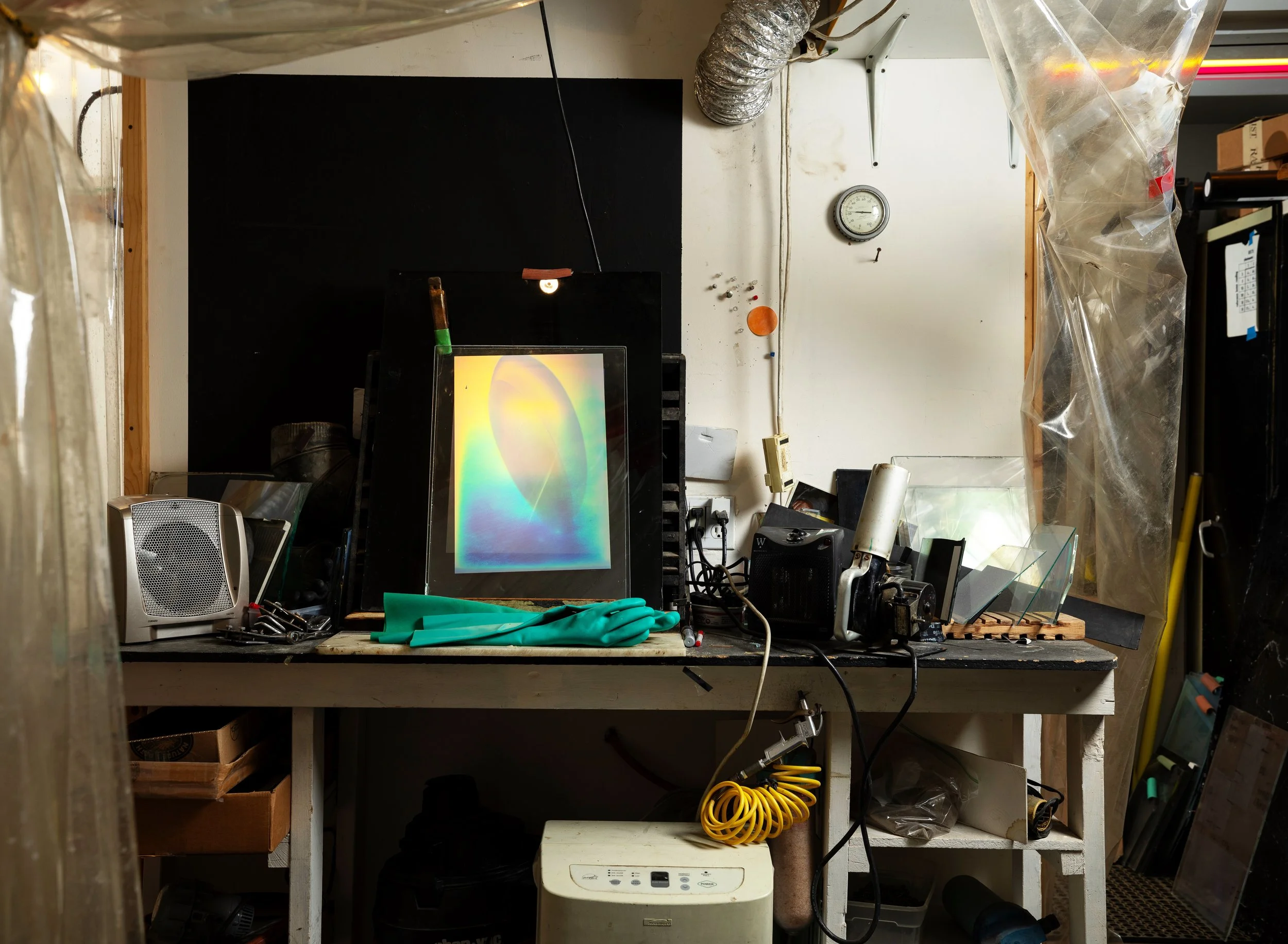 Through the simple forms that shape his work, Muth creates an experiential voyage in color, physical space, and what he terms as material light. Tactile forms of pure color occupy physical space while colors coalesce into one another, creating a field of pure light, color and vibratory energy. These works allow for expanding the visual and physical fields of perception. Muth’s intention is to open doors to a reverence of light while exploring the innate enigma encompassing the realm of the photon.