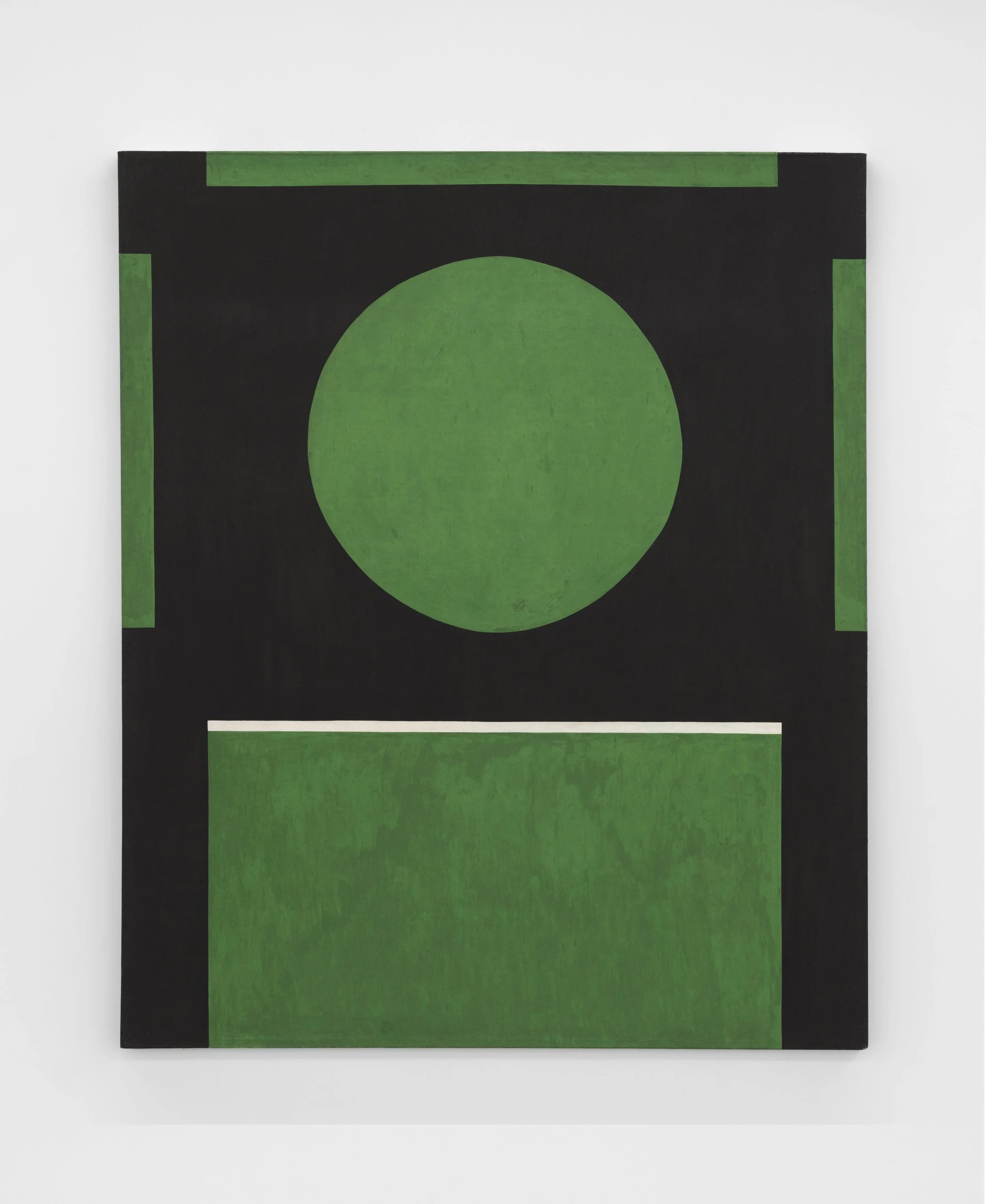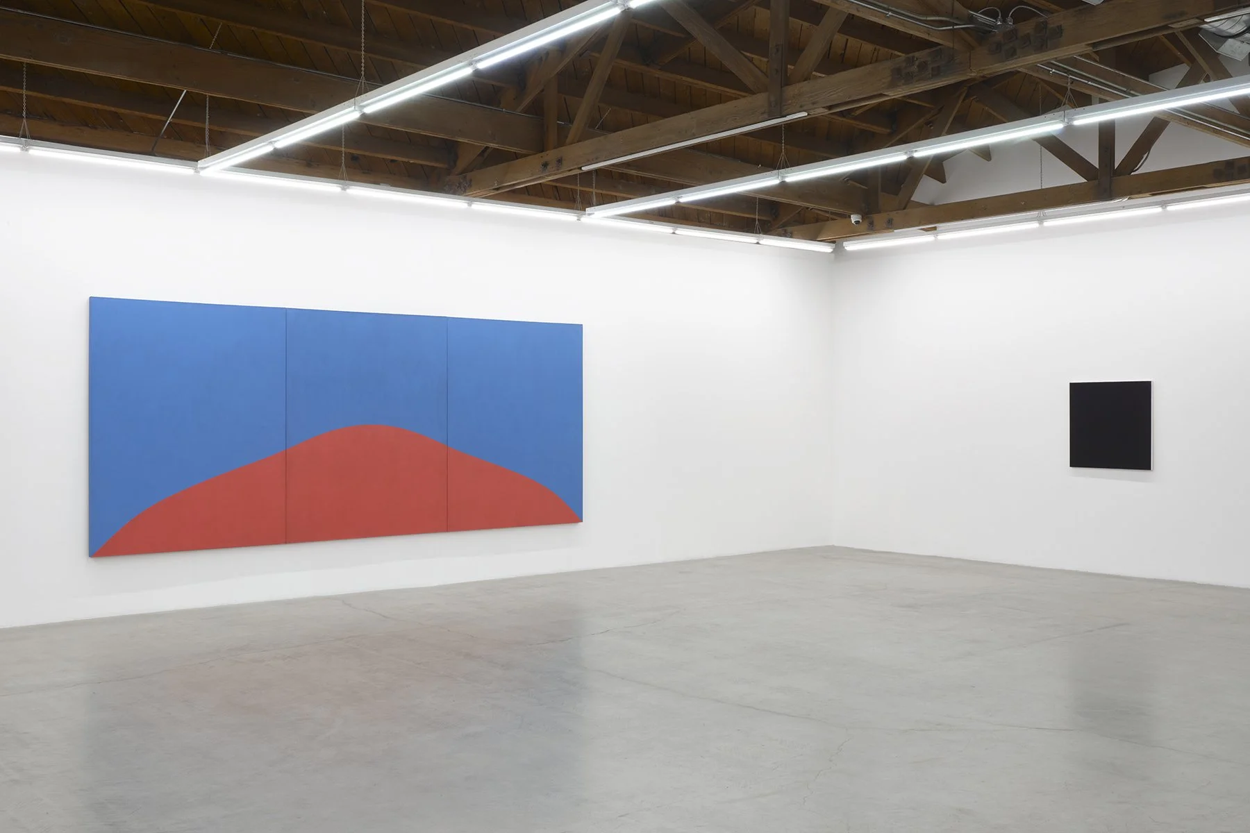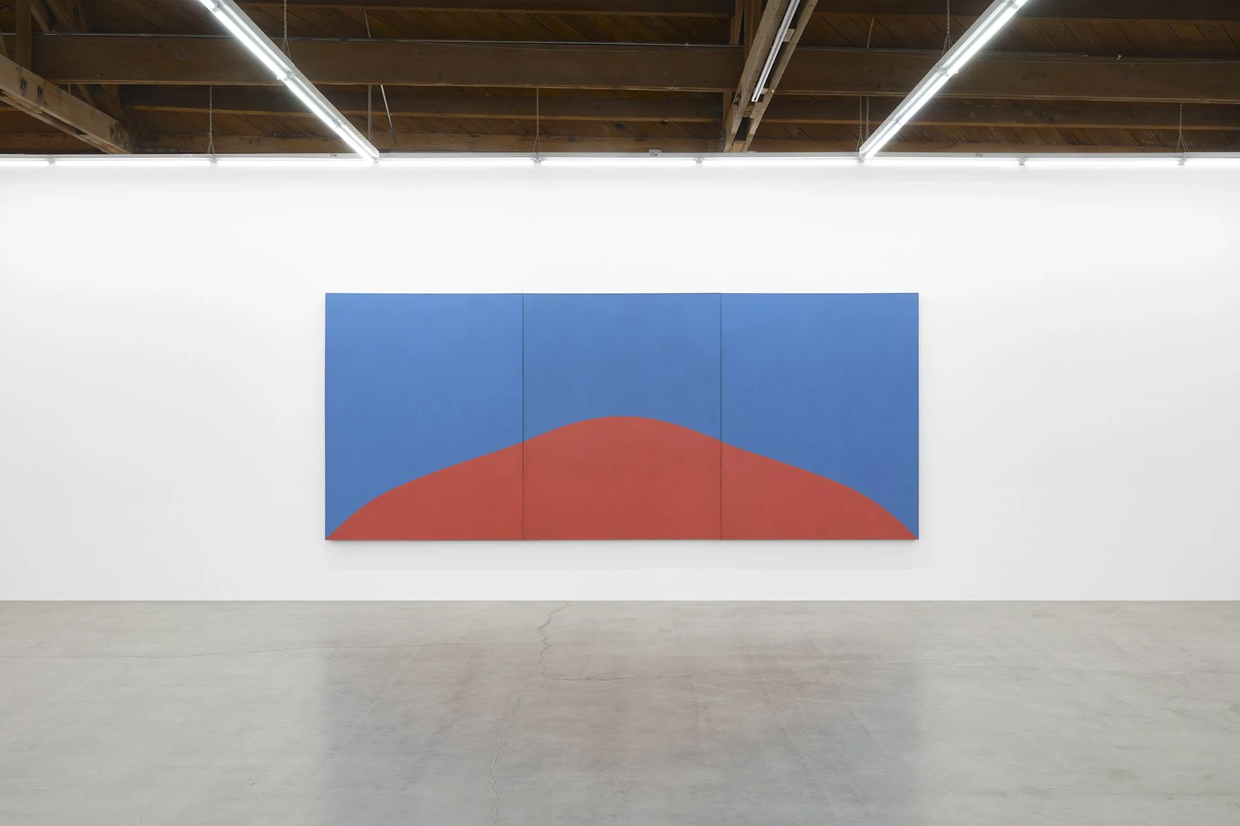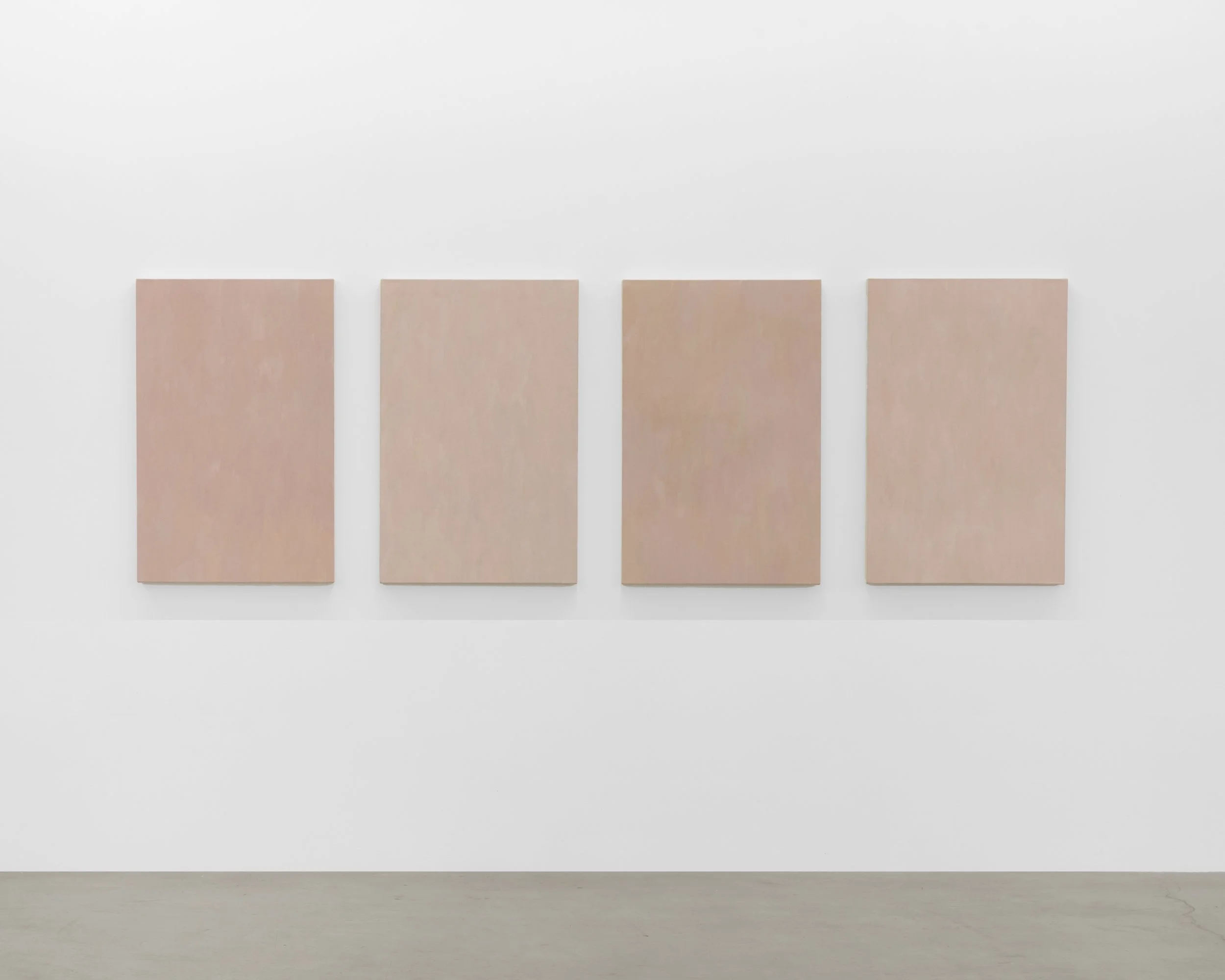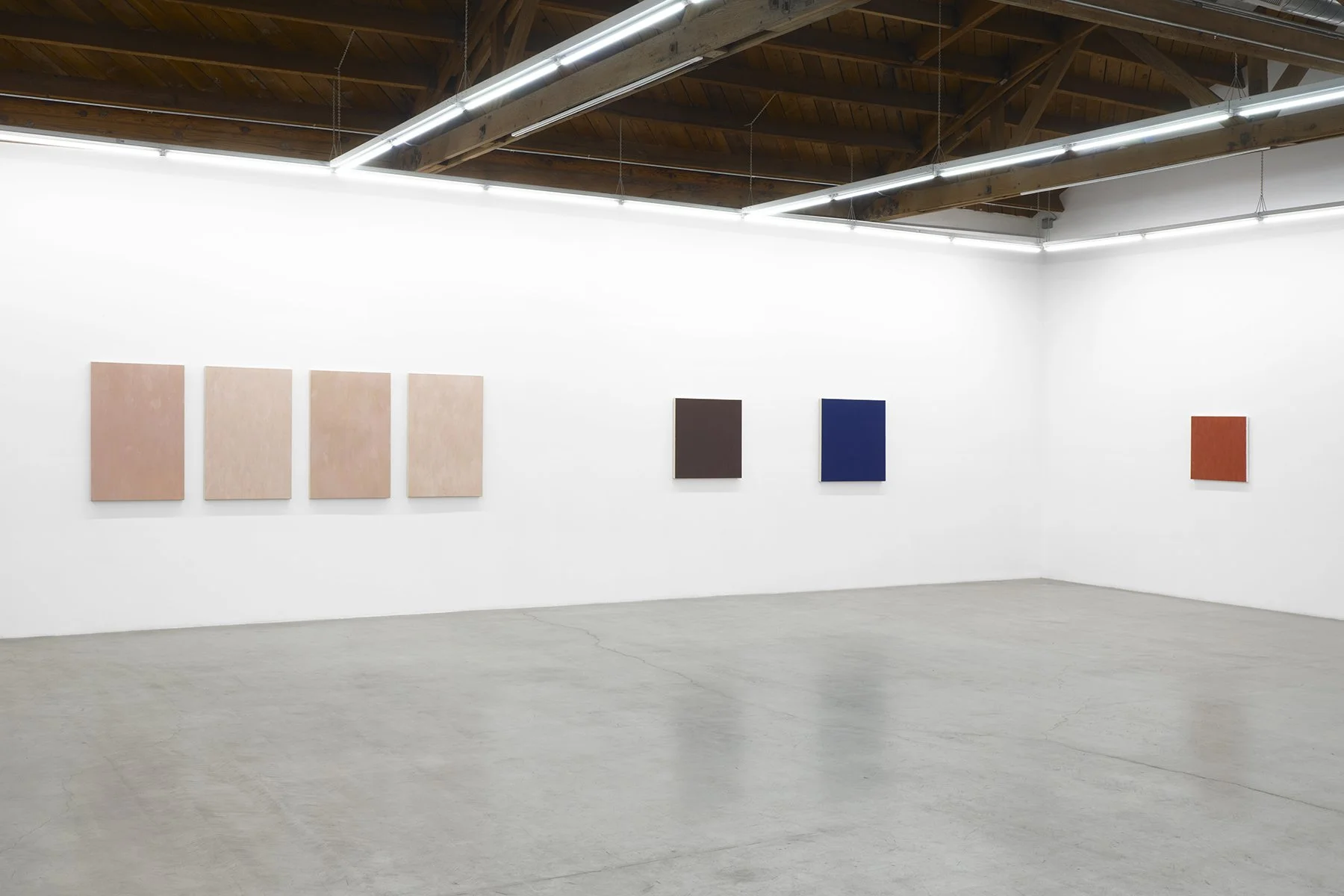 Attuned to chromatic variance, to light’s specific relationship with a specific location, Hafif collected native pigments, often referencing them in the titles of her works. Included in this exhibition, Roman Painting III (1987) invokes the tonality and hue of a Roman cityscape, while French Painting: Rose Painting: May 17, 1993 (1993) is expressive of the colors of Lyon, France. These two iconic bodies of work, while parallel in process, are differentiated by a subtle violet hue, the latitude between Lyon and Rome. In Mass Tone, Prussian Blue (1974), the artist used dense, unmixed pigments to create unique surface effects, the result of their own material nature.
